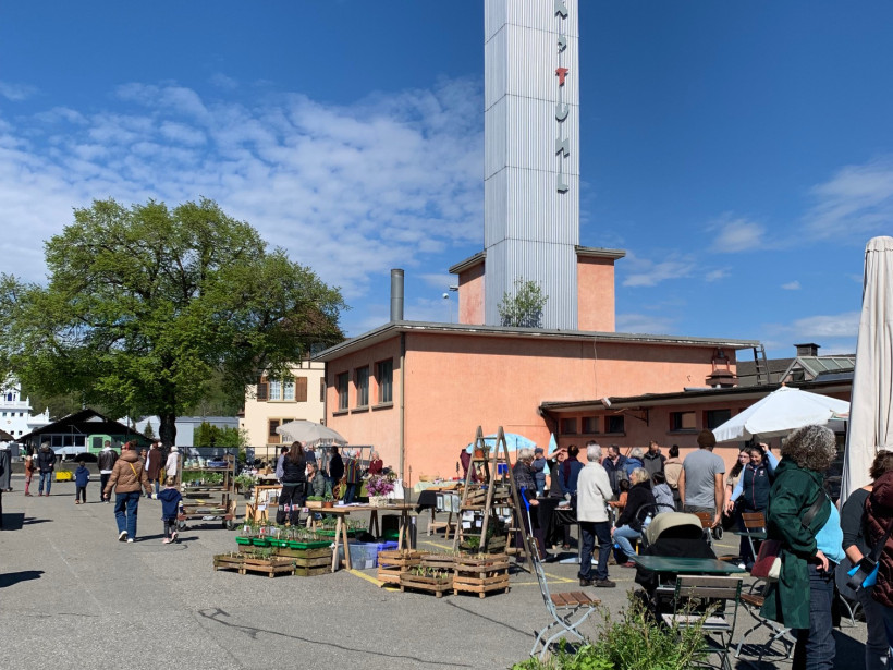 Märit auf dem Porziareal Werk 20 – von April bis September einmal pro Monat mit Kunterbuntem, Kaffee & Kuchen, Handwerk, Gemüse und frischem Brot.